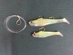 Small Tsunami Tandem built with Holographic 7" swim shad, 3 way swivel, 7" Holographic swim shad built on 80# mono.